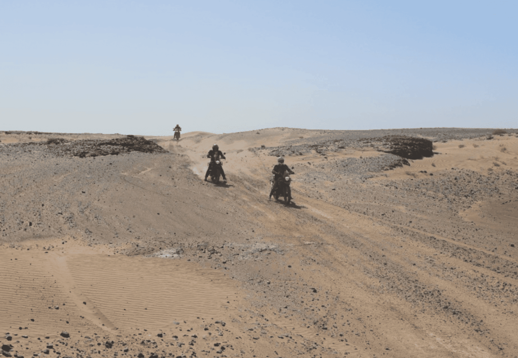 Après un lever de soleil dans les dunes, nous passons la journée dans un subtil mélange de pistes en sable et de petites routes pour rejoindre l’Oasis de Tafraoute.